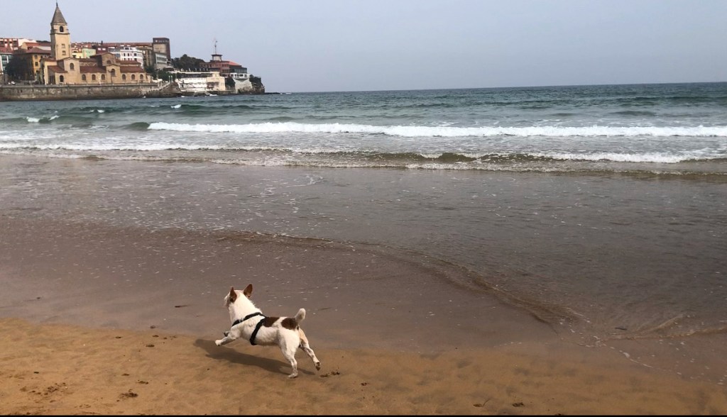 Desde Oviedo puedes tomar el tren a Gijón, llegas en una media hora sin problema es un muy buen viaje. Llevamos a Moritz nuestro perro, todo super bien con él en el tren y en el restaurante que escogimos, la gente en Asturias quiere bastante a los perros, fue bien recibido con la pancita llena de todos los premios que le daban.